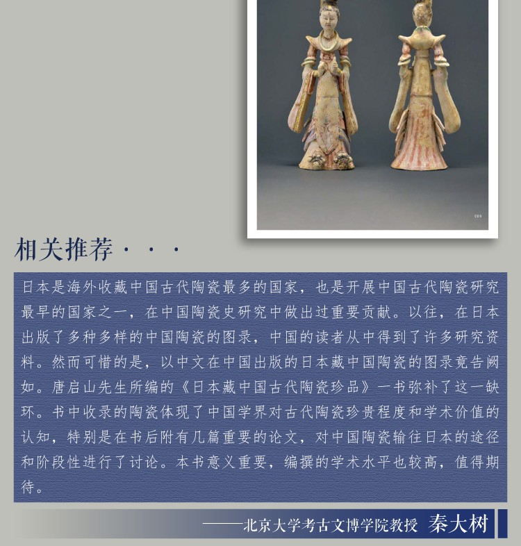 日本是海外收藏中國古代陶瓷最多的國家,也是開展中國古代陶瓷研究最早的國家之一,在中國陶瓷史研究中做出過重要貢獻。 以往,在日本出版了多種多樣的中國陶瓷的圖錄,中國的讀者從中得到了許多研究資料。 然而可惜的是,以中文在中國出版的日本藏中國陶瓷的圖錄竟告闕如。 唐啟山先生所編的《日本藏中國古代陶瓷珍品》一書彌補了這一缺環。 書中收錄的陶瓷體現了中國學界對古代陶瓷珍貴程度和學術價值的認知,特別是在書後附有幾篇重要的論文,對中國陶瓷輸往日本的途徑和階段性進行了討論。 本書意義重要,編撰的學術水準也較高,值得期待。